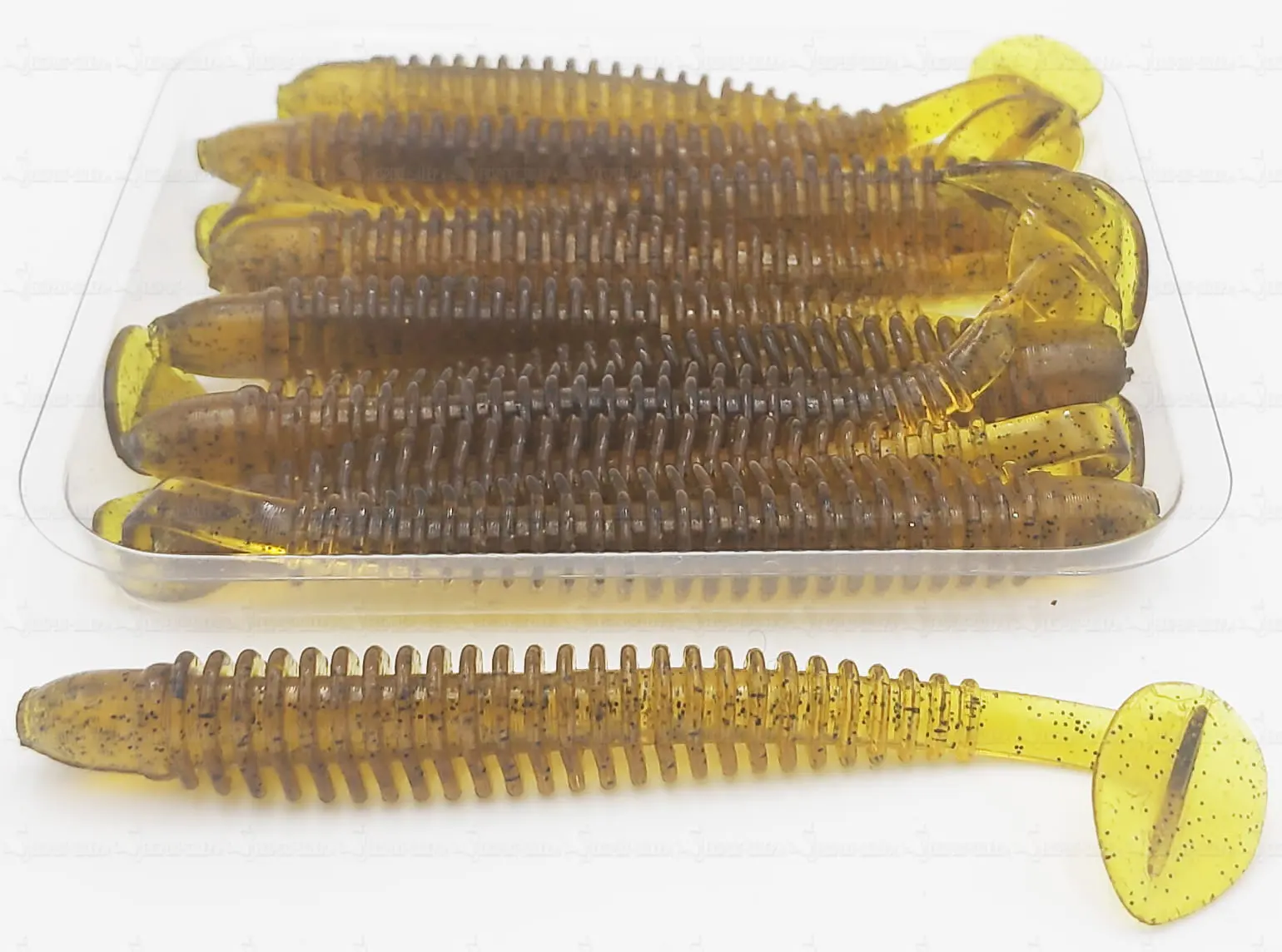 Guma ma długi, prążkowany korpus i ogon o intensywnej pracy, które nasilają drgania wody. Z tego względu, przynęta bardzo intensywnie wibruje i wabi uwagę ryby. Guma ta pracuje nawet przy wolnym prowadzeniu. Prospiny emitują silny zapach i smak rybny, co dodatkowo przyciąga ryby nawet z dalszej odległości. Przynęta przeznaczona nie tylko do łowienia okoni, lecz też do innych ryb drapieżnych. Zastosowania: główka jig lub hak offsetowy.