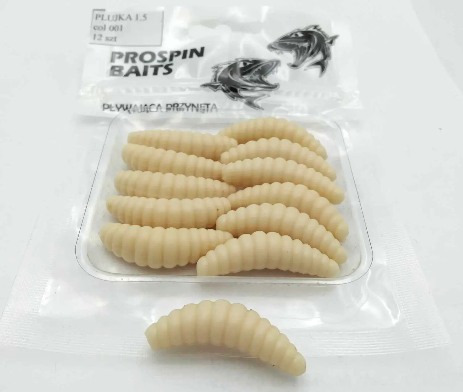 PRZYNĘTY GUMY PROSPIN PLUJKA 1.5 4cm kol 001 MAGGOT / LARWA- 12szt