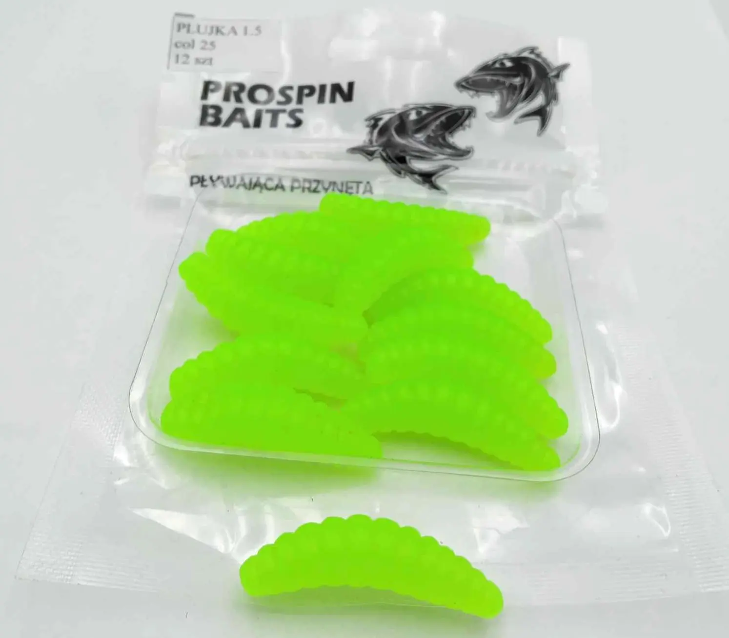 PLUJKA jest pierwszą przynętą imitującą larwy w asortymencie PROSPIN BAITS. Guma ta idealnie nadaje się do metody Dropshot oraz do stosowania z główką jigową oraz czeburaszką.