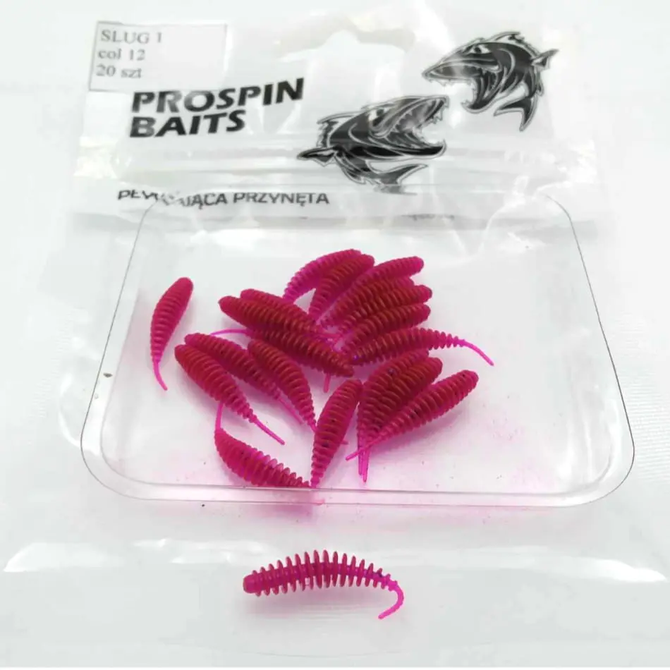 Przynęta PROSPIN SLUG 1.5 została stworzona z myślą o pstrągu, okoniu czy jaziu. Ślimaki wystapują w rozmiarze 4cm, w wersji pływającej, zapachowej, wykonane z bardzo mięciutkiego materiału. Możecie je zabrać ze sobą, gdy szukacie okonia, klenia, czy pstrąga. Podczas testów okazało się także, że polubiły je nie tylko drapiezniki, ale również ryby spokojnego żeru, zazwyczaj nie łowione metodą spinningową, takie jak wzdęgi, leszcze, karasie, czy nawet karpie.