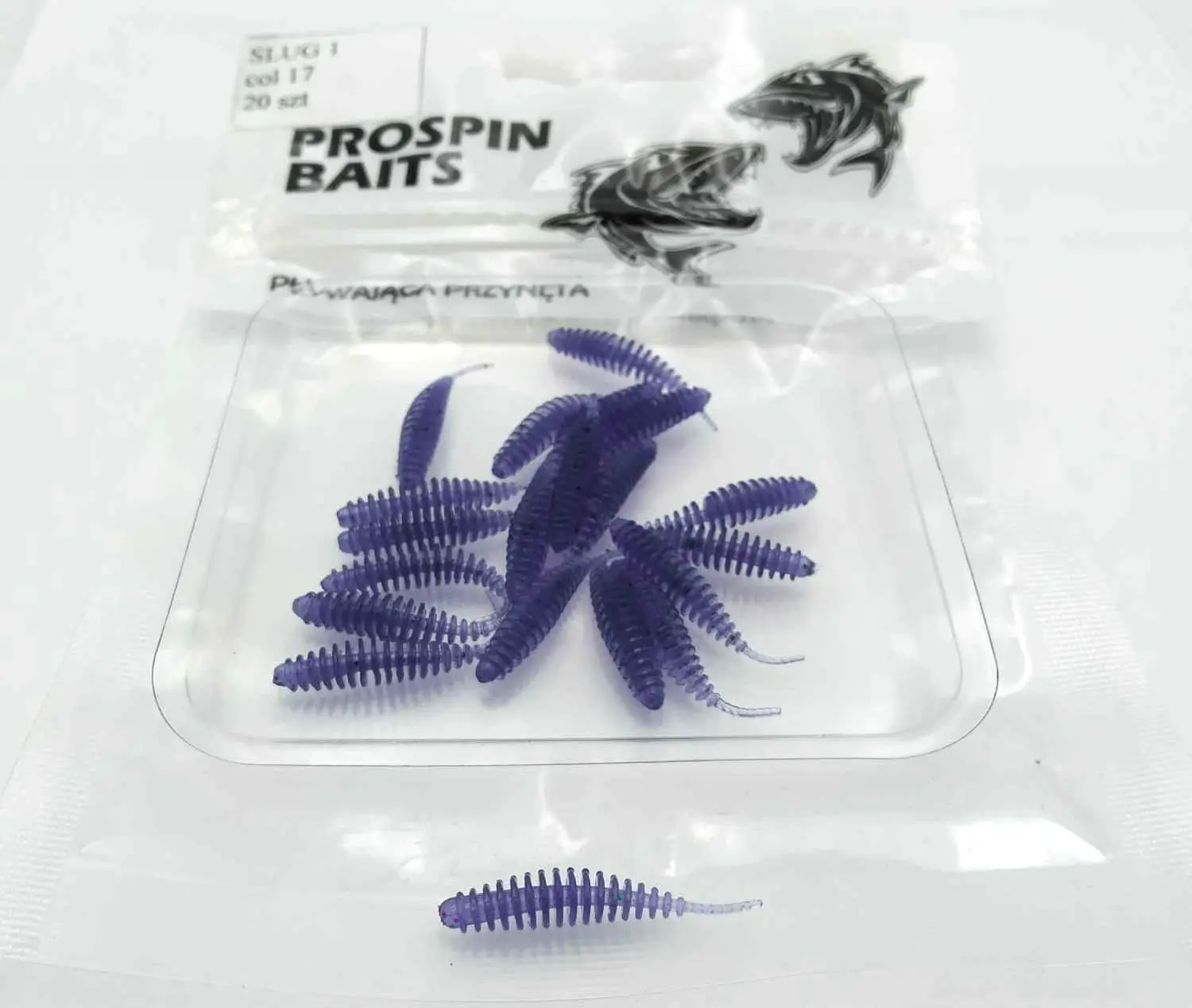 Przynęta PROSPIN SLUG 1.5 została stworzona z myślą o pstrągu, okoniu czy jaziu. Ślimaki wystapują w rozmiarze 4cm, w wersji pływającej, zapachowej, wykonane z bardzo mięciutkiego materiału. Możecie je zabrać ze sobą, gdy szukacie okonia, klenia, czy pstrąga. Podczas testów okazało się także, że polubiły je nie tylko drapiezniki, ale również ryby spokojnego żeru, zazwyczaj nie łowione metodą spinningową, takie jak wzdęgi, leszcze, karasie, czy nawet karpie.