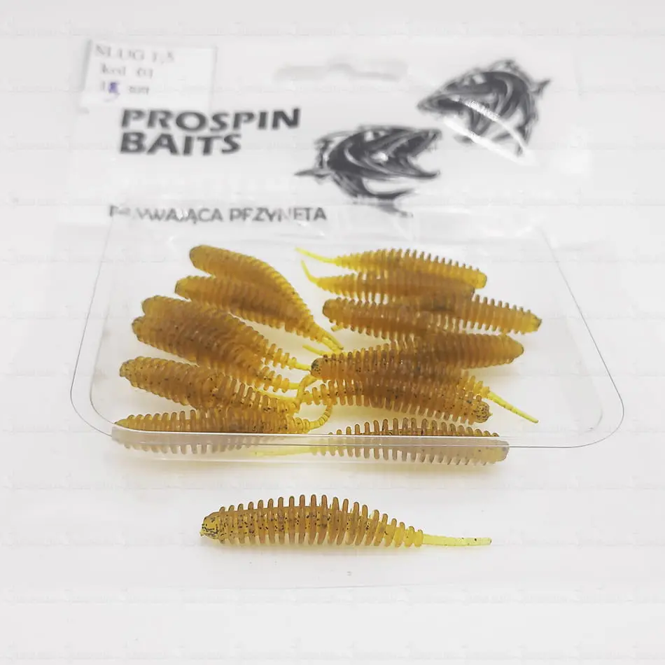Przynęta PROSPIN SLUG 1.5 została stworzona z myślą o pstrągu, okoniu czy jaziu. Ślimaki wystapują w rozmiarze 4cm, w wersji pływającej, zapachowej, wykonane z bardzo mięciutkiego materiału. Możecie je zabrać ze sobą, gdy szukacie okonia, klenia, czy pstrąga. Podczas testów okazało się także, że polubiły je nie tylko drapiezniki, ale również ryby spokojnego żeru, zazwyczaj nie łowione metodą spinningową, takie jak wzdęgi, leszcze, karasie, czy nawet karpie.