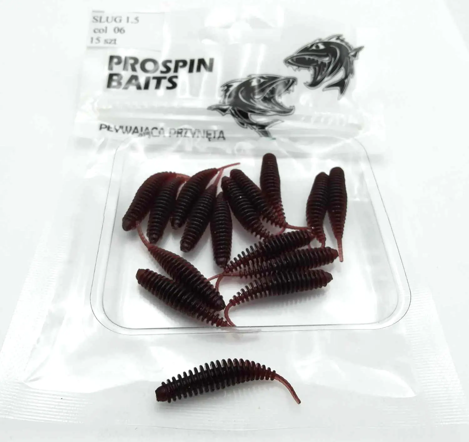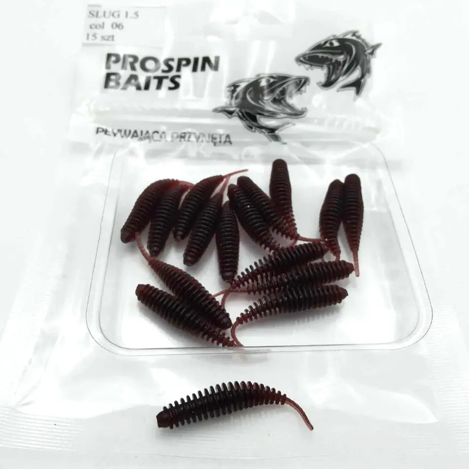 Przynęta PROSPIN SLUG 1.5 została stworzona z myślą o pstrągu, okoniu czy jaziu. Ślimaki wystapują w rozmiarze 4cm, w wersji pływającej, zapachowej, wykonane z bardzo mięciutkiego materiału. Możecie je zabrać ze sobą, gdy szukacie okonia, klenia, czy pstrąga. Podczas testów okazało się także, że polubiły je nie tylko drapiezniki, ale również ryby spokojnego żeru, zazwyczaj nie łowione metodą spinningową, takie jak wzdęgi, leszcze, karasie, czy nawet karpie.