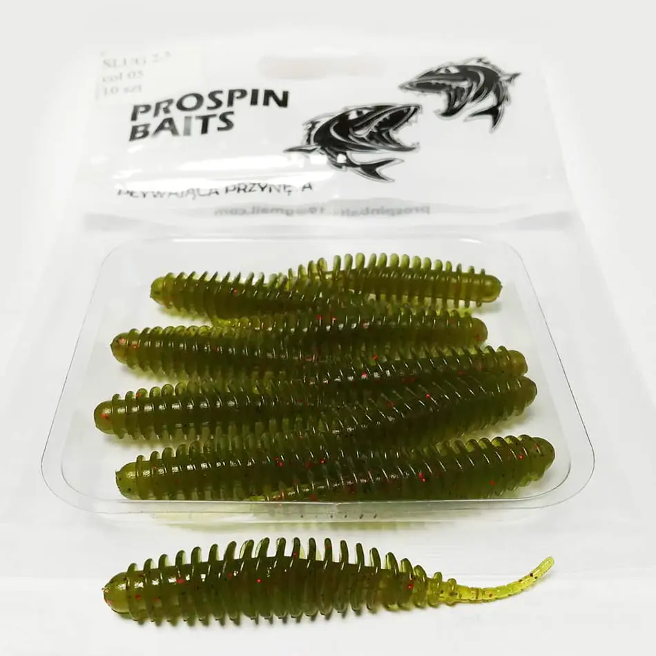 Przynęta PROSPIN SLUG 2.5 została stworzona z myślą o pstrągu, okoniu czy jaziu. Ślimaki wystapują w rozmiarze 6,5cm, w wersji pływającej, zapachowej, wykonane z bardzo mięciutkiego materiału. Możecie je zabrać ze sobą, gdy szukacie okonia, klenia, czy pstrąga. Podczas testów okazało się także, że polubiły je nie tylko drapiezniki, ale również ryby spokojnego żeru, zazwyczaj nie łowione metodą spinningową, takie jak wzdęgi, leszcze, karasie, czy nawet karpie.
