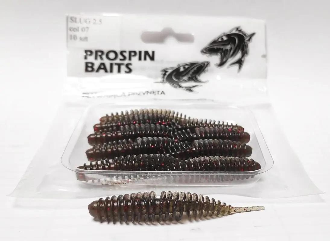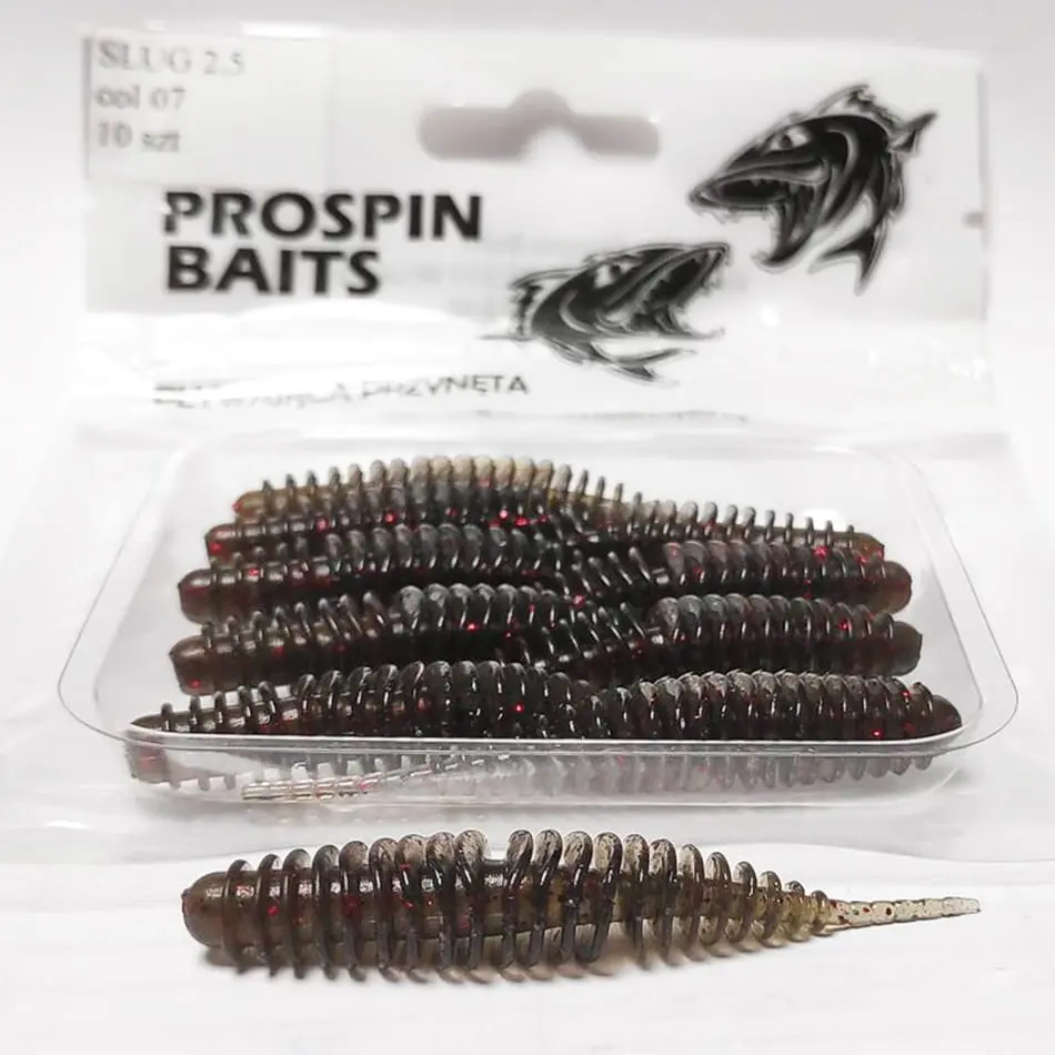 Przynęta PROSPIN SLUG 2.5 została stworzona z myślą o pstrągu, okoniu czy jaziu. Ślimaki wystapują w rozmiarze 6,5cm, w wersji pływającej, zapachowej, wykonane z bardzo mięciutkiego materiału. Możecie je zabrać ze sobą, gdy szukacie okonia, klenia, czy pstrąga. Podczas testów okazało się także, że polubiły je nie tylko drapiezniki, ale również ryby spokojnego żeru, zazwyczaj nie łowione metodą spinningową, takie jak wzdęgi, leszcze, karasie, czy nawet karpie.