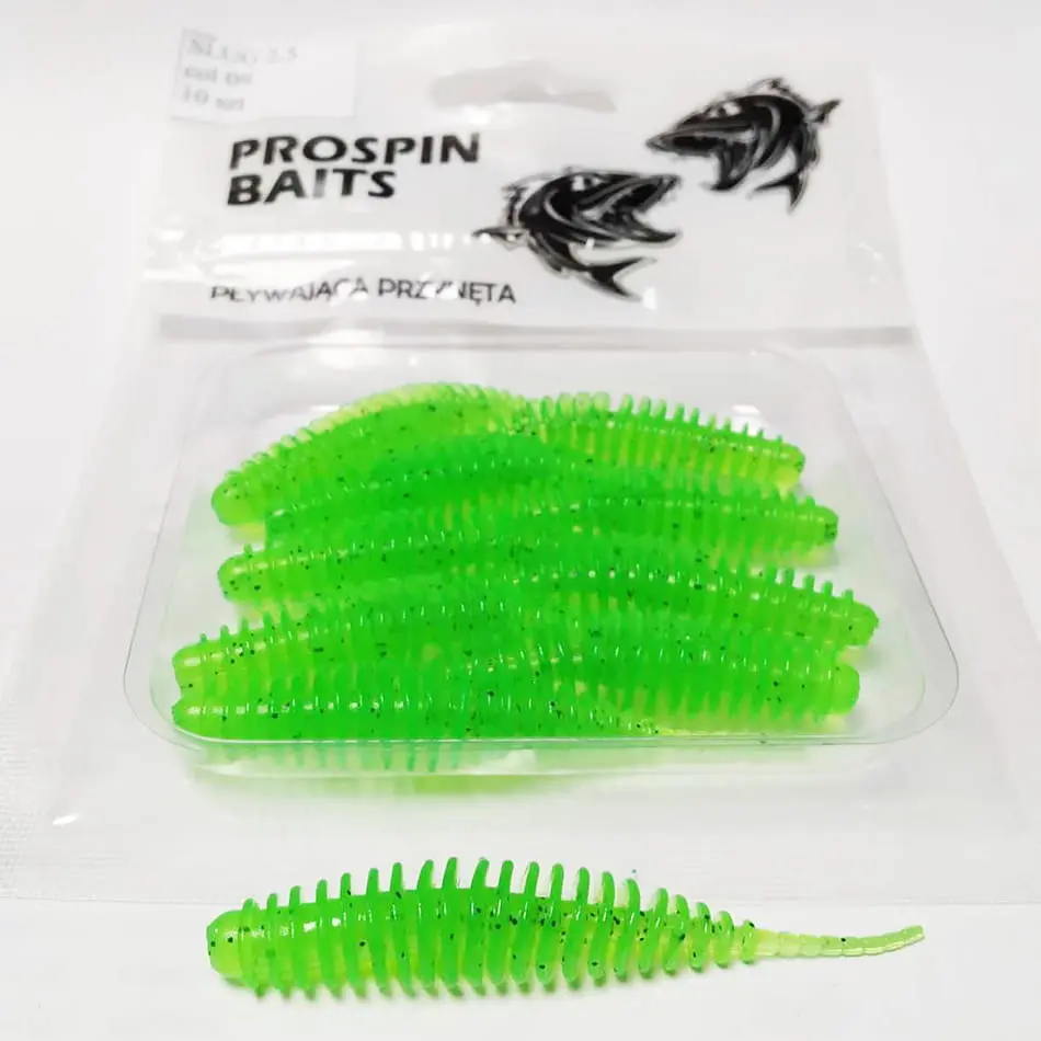 Przynęta PROSPIN SLUG 2.5 została stworzona z myślą o pstrągu, okoniu czy jaziu. Ślimaki wystapują w rozmiarze 6,5cm, w wersji pływającej, zapachowej, wykonane z bardzo mięciutkiego materiału. Możecie je zabrać ze sobą, gdy szukacie okonia, klenia, czy pstrąga. Podczas testów okazało się także, że polubiły je nie tylko drapiezniki, ale również ryby spokojnego żeru, zazwyczaj nie łowione metodą spinningową, takie jak wzdęgi, leszcze, karasie, czy nawet karpie.