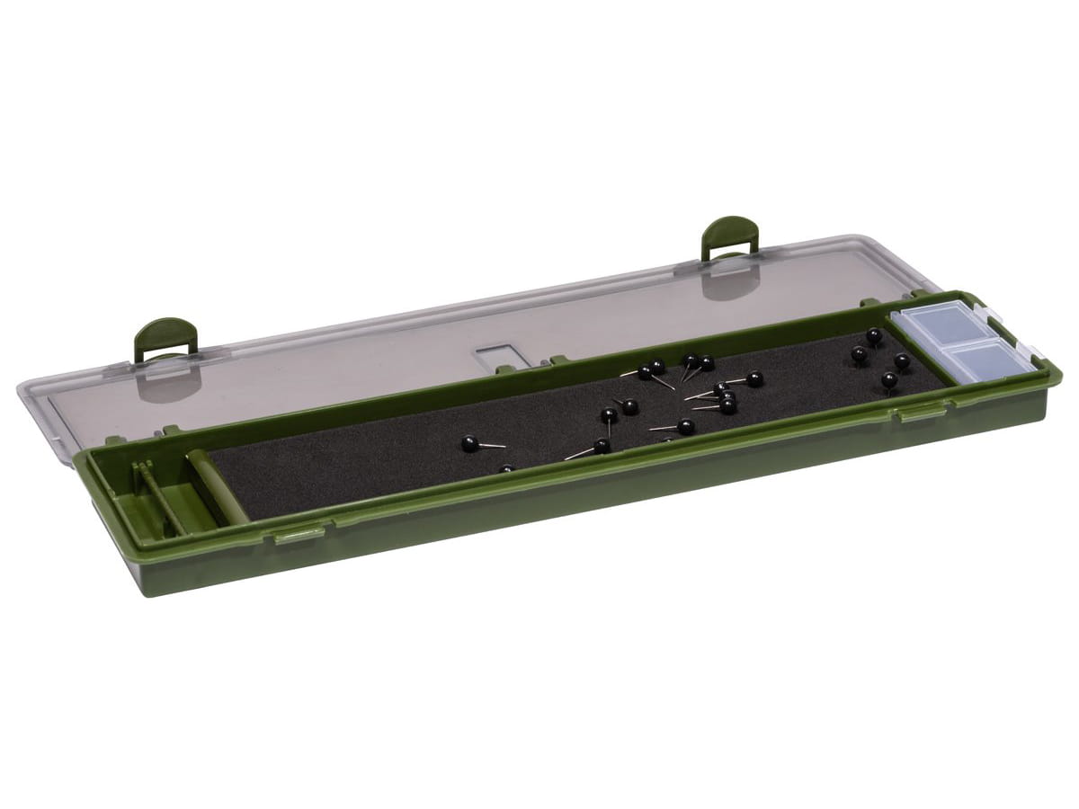 Specjalistyczne pudełko karpiowe przeznaczone na sztywne przypony. Wytrzymałe tworzywo sztuczne, odporne na uderzenia Mocne zawiasy, trwałe zamknięcie, pinezki w komplecie.