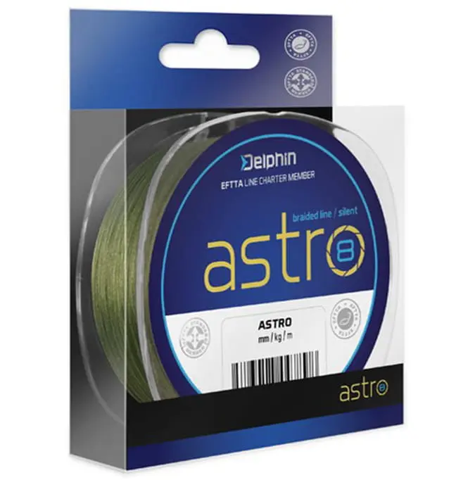 Plecionka wykonana ze splotu ośmiu włókien PE o okrągłym przekroju. Charakteryzują się wysoką odpornością na przetarcia i wytrzymałością w węźle. Plecionka ASTRO 8 jest idealnie gładka, a to dzięki ciasnemu splotowi włókien.