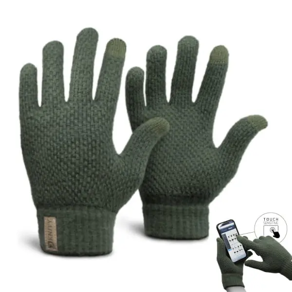 Stylowe rękawiczki dzianinowe, które z pewnością będziesz chciał nosić nie tylko nad wodą. Dzięki materiałowi, z którego są wykonane w stonowanym zielonym kolorze, idealnie wpasują się w Twój zimowy strój i ogrzeją dłonie w mroźne dni.