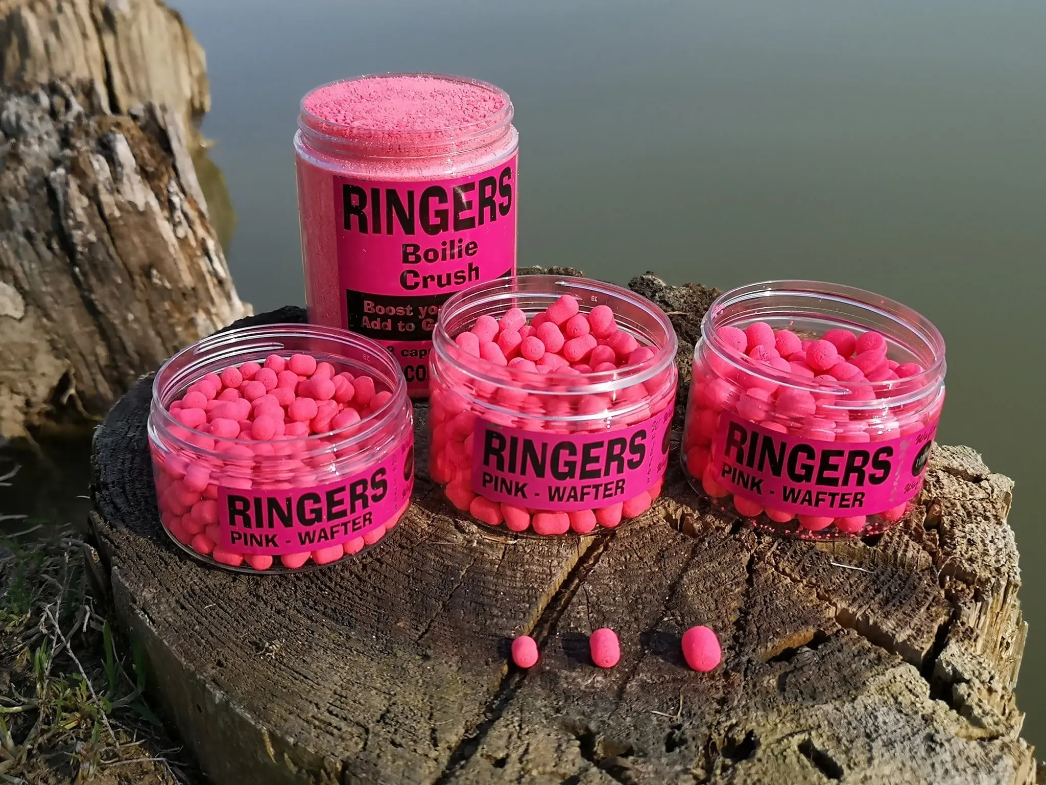 Różowe dumbellsy marki Ringers. Intensywnie czekoladowy aromat oraz "neutralna" pływalność gwarauntują sukces na większości łowisk komercyjnych.