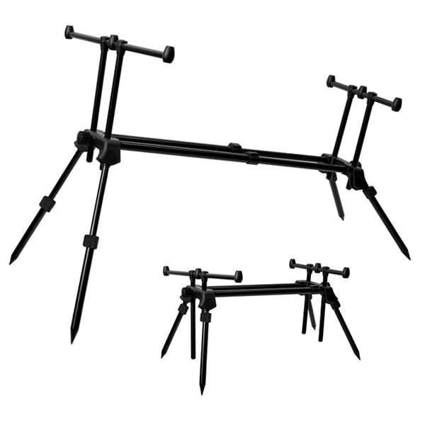 Dzięki czarnemu kolorowi pasuje do otaczającego go środowiska. Oferuje mocną i bardzo stabilną konstrukcję w połączeniu z niską wagą. Wymiary transportowe sprawiają, że idealnie nadaje się do noszenia w torbie wędkarskiej. W zestawie z etui ochronnym z materiału tekstylnego. Wysokość poziomego stelaża można regulować za pomocą śrub po obu stronach. Nogi teleskopowe można ustawić w trzech różnych pozycjach.