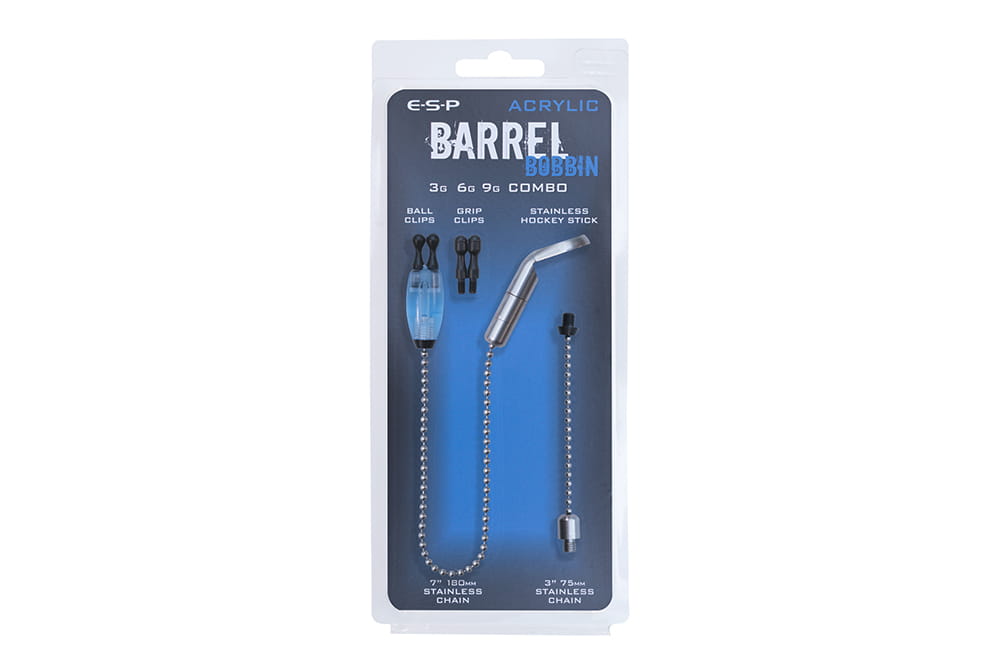 Uniwersalne zestawy BARREL BOBBINS zawierają wszystko, co potrzebne, aby zapewnić doskonałą sygnalizację brania. Dostępne w siedmiu kolorach – teflonowy biały oraz akrylowe: czerwony, niebieski, fioletowy, pomarańczowy, zielony i żółty. Wszystkie elementy, oprócz łańcuszków są zrobione w fabryce w Wielkiej Brytanii, gwarantując wyjątkową jakość i precyzje.