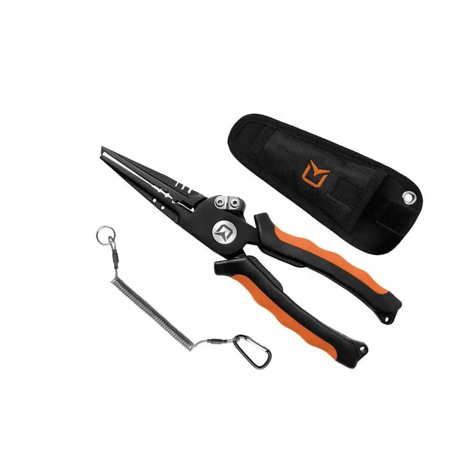 Szczypce są dostarczane z praktycznym czarnym etui na pasek i czarną elastyczną linką wyposażoną w karabińczyki na obu jej końcach.