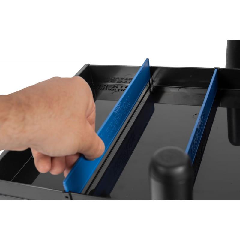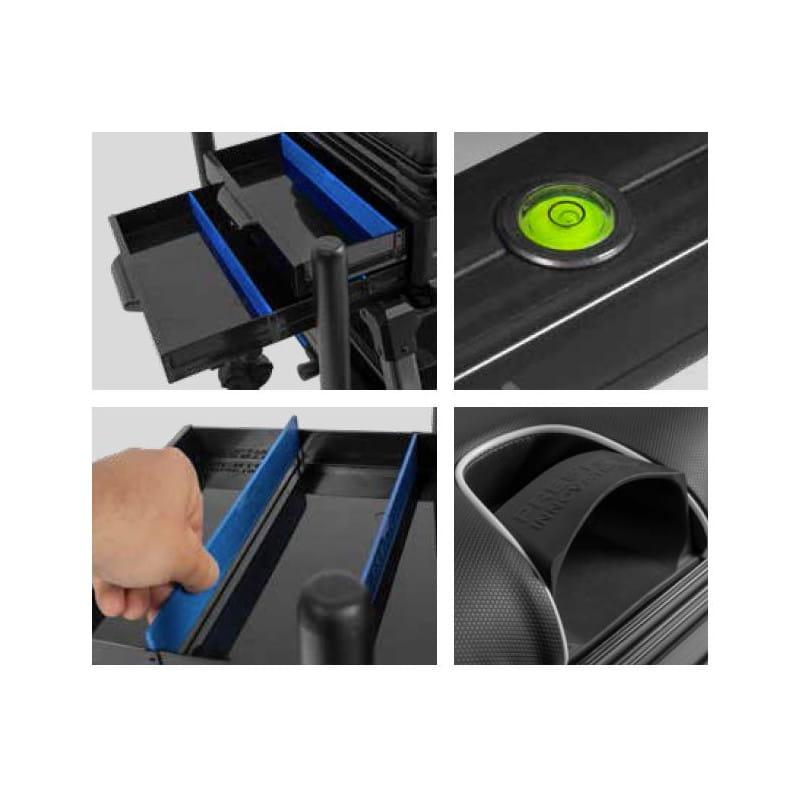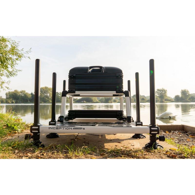 Zbudowana na bardzo mocnej i eleganckiej ramie, która jest dostępna w kolorze białym lub grafitowym, stacja Inception ma mnóstwo miejsca do przechowywania. Głębokie przedziałowe szuflady boczne są idealne na akcesoria, podczas gdy głębokie szuflady z wyjmowanymi przegródkami mogą być używane do skrzynek o dużej długości lub dowolnych większych akcesoriów. Pomiędzy szufladami a siedziskiem znajduje się pusta płytka taca, która jest idealna do przechowywania przyponów.