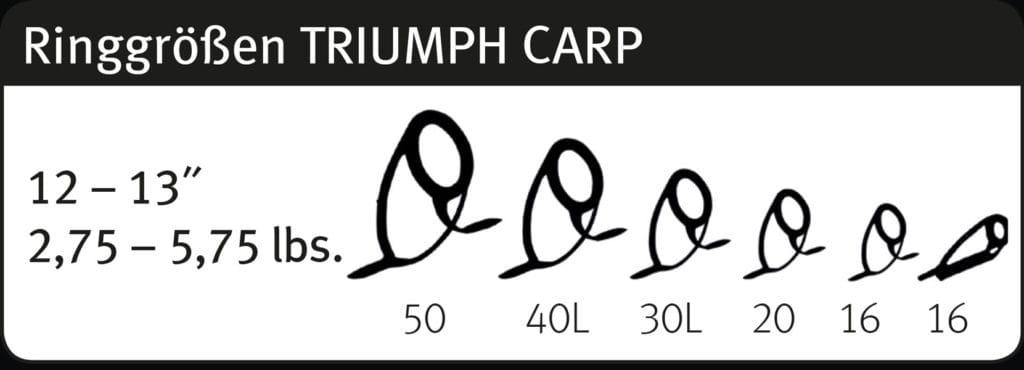 Seria powstała we współpracy z naszymi partnerami z Europy Wschodniej, ponieważ obowiązuje tam w znacznej mierze zakaz łowienia z łodzi. Jako że obfite w ryby miejsca są zazwyczaj bardzo daleko oddalone od brzegu, potrzebne są wędziska o dużej sile wyrzutu. Seria Triumph Carp brawurowo spełnia stawiane wymogi: wykonany z wysoko zmodułowanego materiału węglowego blank dysponuje na całej długości niesamowitą mocą. Szczytówka natomiast posiada wystarczające właściwości tłumiące by skutecznie wydostać rybę na powierzchnię, i uniemożliwić jej zryw. Dotychczasowe testy wyrzutu wskazują na dystans 220m. Modele tej serii zostały wyposażone w przelotki SIC „K-Style” (przelotka startowa o średnicy 50”), w uchwyt kołowrotka Fuji DPS i w wytrzymały dolnik opatrzony duplonem. Semi-transparentna powłoka wierzchnia 1K-Mesh optycznie upiększa blank.