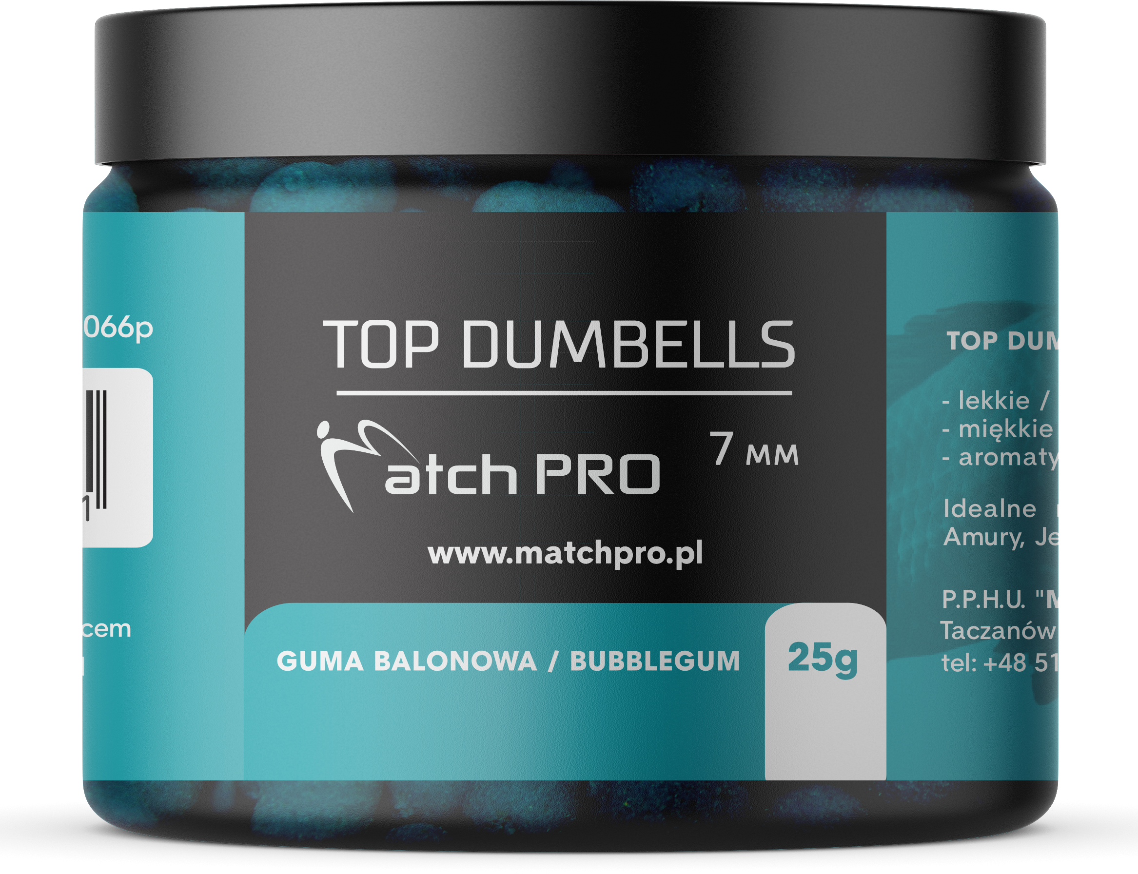 Seria najwyższej jakości przynęt o kształcie wałka (dumbells) w rozmiarze 7mm. Długie i intensywne testy tych przynęt pozwoliły dopracować ich skład i właściwości tak aby były bardzo skuteczne w każdych warunkach. To co wyróżnia Matchpro Top Dumbells to idealna miękkość, dzięki której ryby pewnie ją pobierają. Wyjątkowa lekkość przynęty zapewnia bardzo naturalne zachowanie się w wodzie co niezwykle podnosi skuteczność łowienia. Top Matchpro Dumbells są bardzo aromatyczne, oddając przez długi czas równomiernie aromat w wodzie co przekłada się na dużą ilość brań. Różnorodność smaków i kolorów pozwala dopasować się każdemu wędkarzowi do aktualnych warunków panujących na łowisku.