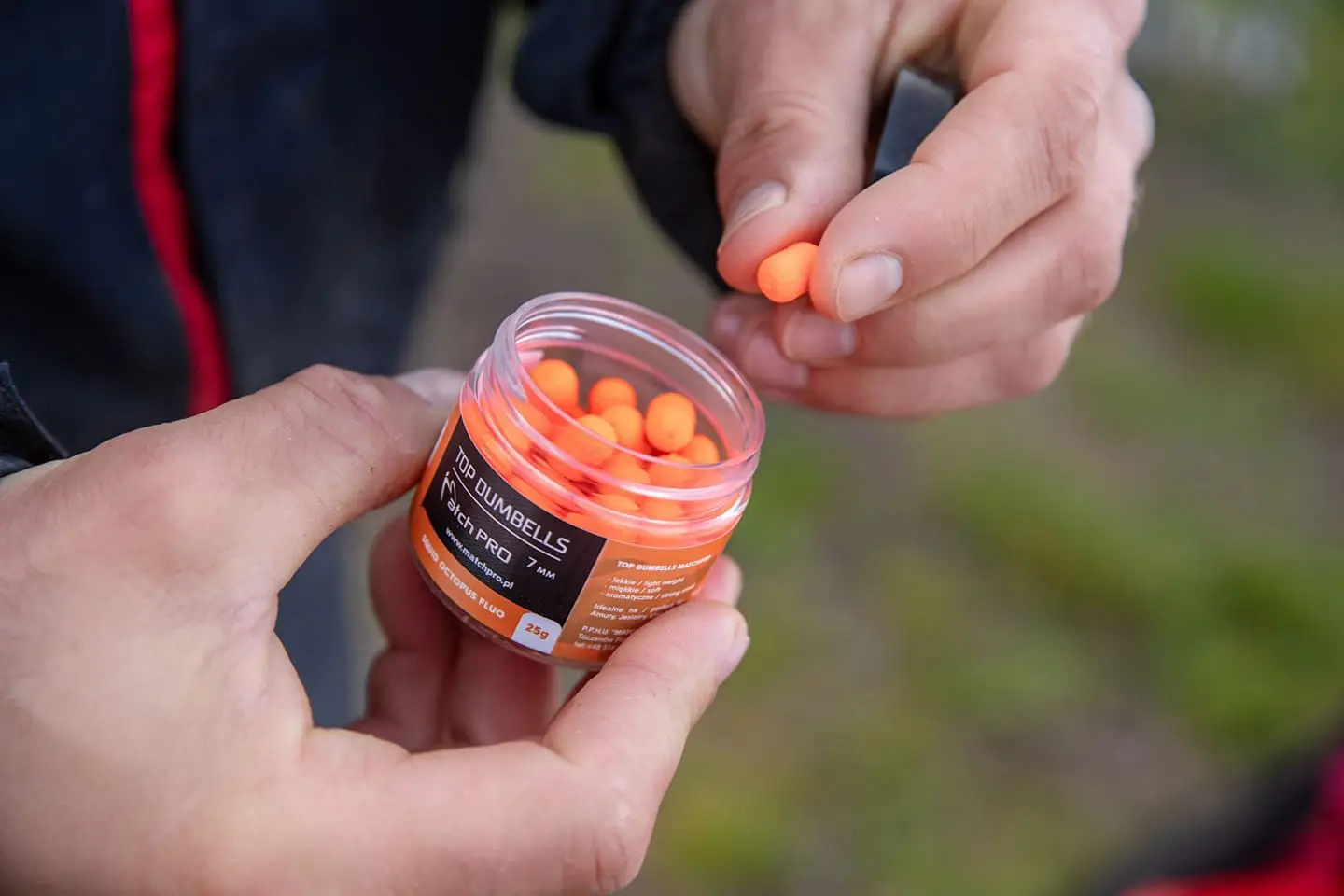 Seria najwyższej jakości przynęt o kształcie wałka (dumbells) w rozmiarze 7mm. Długie i intensywne testy tych przynęt pozwoliły dopracować ich skład i właściwości tak aby były bardzo skuteczne w każdych warunkach. To co wyróżnia Matchpro Top Dumbells to idealna miękkość, dzięki której ryby pewnie ją pobierają.