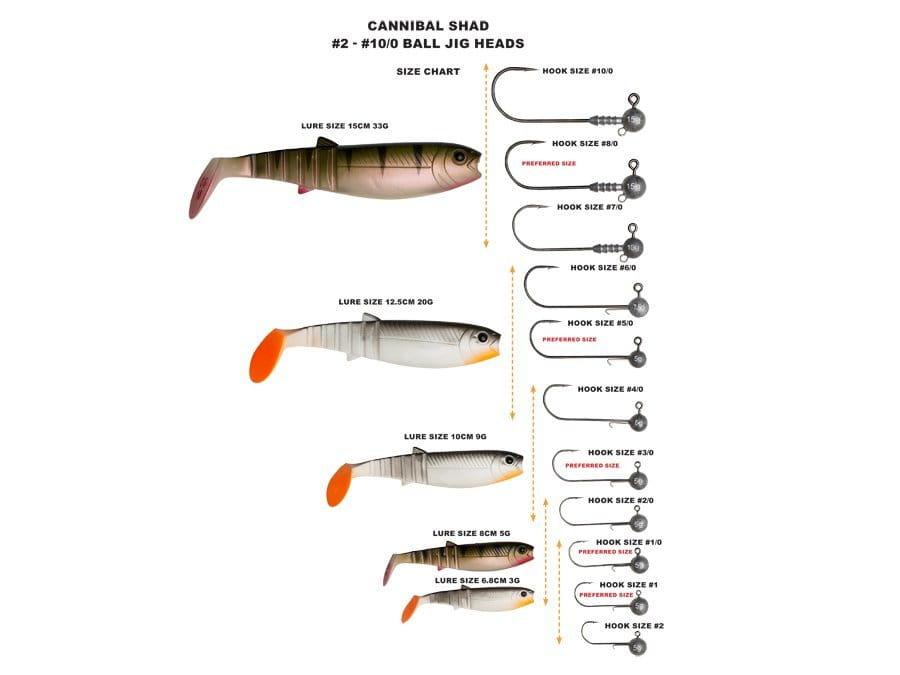 Savage Gear Cannibal to bardzo łowna i wszechstronna w zastosowaniu przynęta - imitująca narybek. Doskonała zarówno do łowienia z opadu, jak i jednostajnego prowadzenia. Najmniejsze wabiki to doskonała przynęta na okonie. Większe znajdą zastosowanie przy połowie szczupaków, sandaczy i dużych okoni. Największe to doskonały wabik morski i trollingowy.