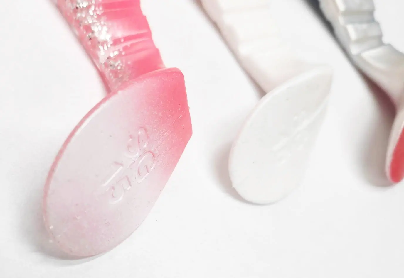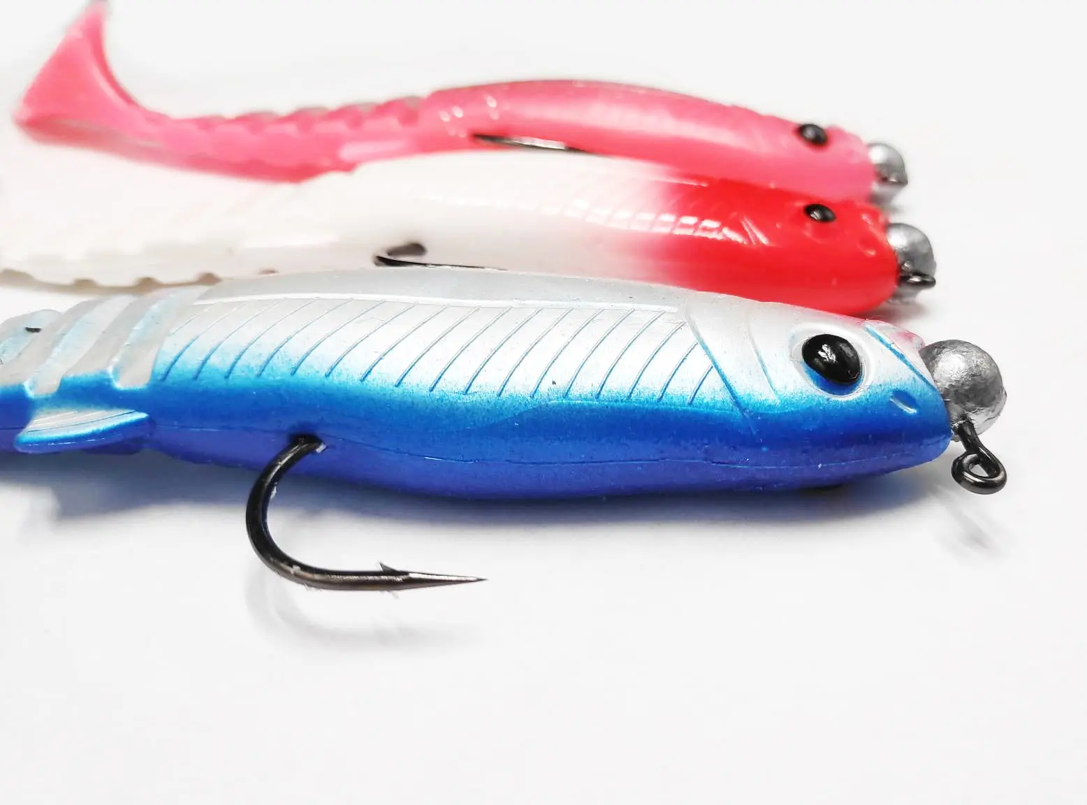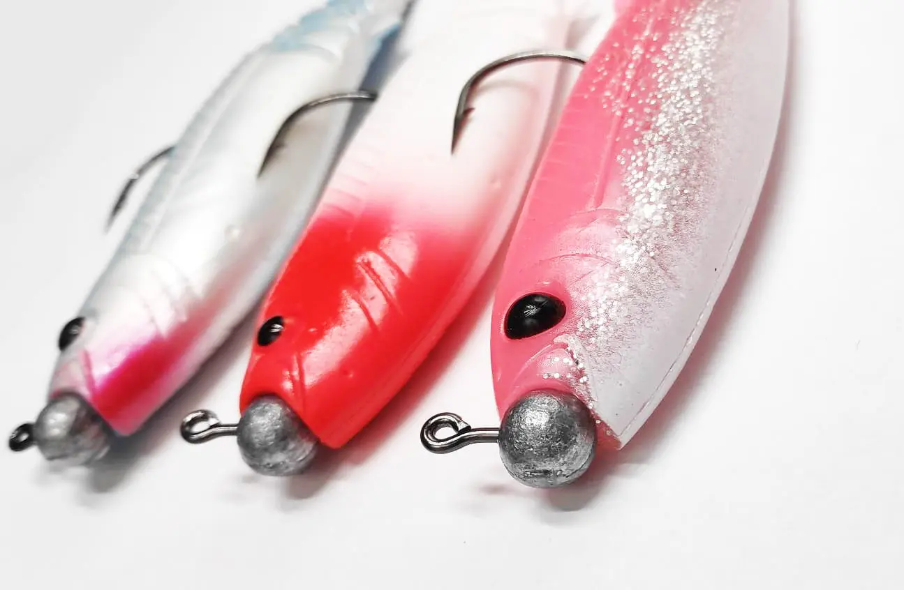 Cechą charakterystyczną tych imitacji jest "rozwarty" pyszczek, który ma za zadanie zassać główkę jigową i poprawić jej mocowanie.