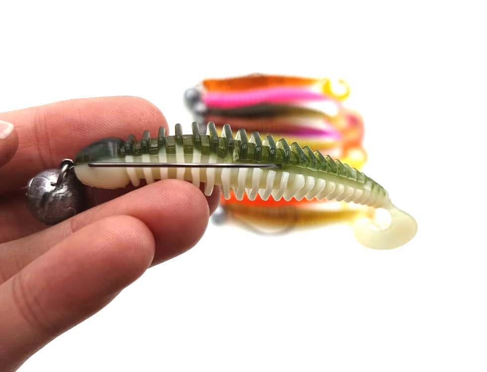 Zakrzywiony ogonek wibruje przy najmniejszym poruszeniu, a cała przynęta kołysze się nawet przytrzymywana w miejscu. Przydaje się to w naprawdę trudnych sytuacjach, gdy tylko minimalny ruch jest odpowiedni do sprowokowania ryby.