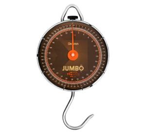 Solidna waga mechaniczna przeznaczona do ważenia złowionych ryb. Masywna konstrukcja wagi JUMBO pozwala zważyć ryby do 54 kg z najmniejszymi odchyleniami. Waga jest pokazana za pomocą wskazówki na dużej skali tarczowej z dwiema różnymi jednostkami – kilogramami i funtami. Podnoszenie wagi podczas ważenia ułatwia bardzo mocny metalowy uchwyt.