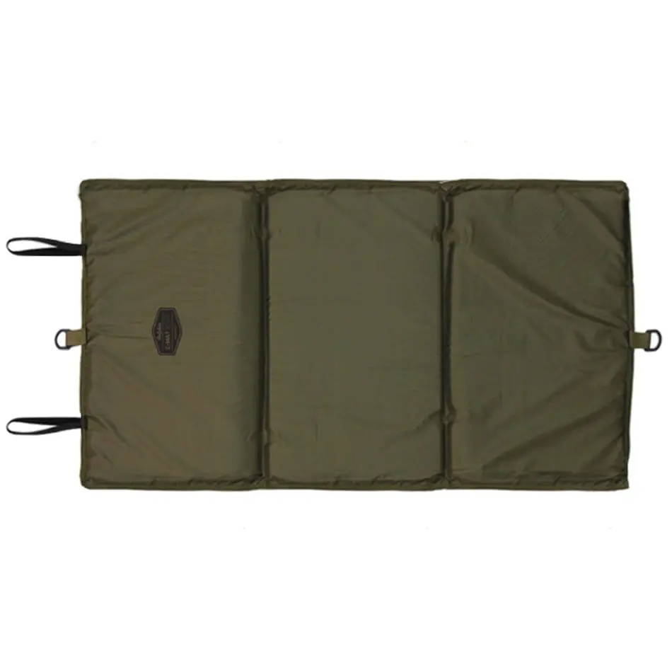 Kompaktowa, poręczna mata karpiowa od firmy Delphin do odhaczania złowionych okazów. Trwała mata składa się z materaca/pianky, która jest obszyta wodoodpornym materiałem. Przeszycie dzieli matę na trzy części, dzięki czemu łatwo się składa. Podczas transportu wystarczy przełożyć gumowe pasy przez złożoną matę. Po obu stronach maty znajdują się specjalne klipsy, które pozwolą na zakotwiczenie jej w gruncie za pomocą szpilek.