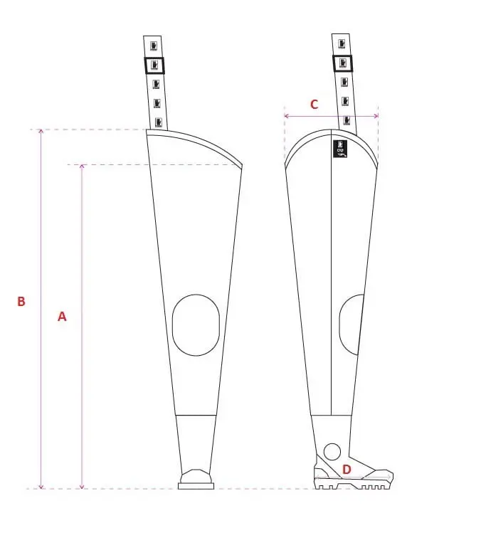 odchylenieA długość wewnętrzna z butem (z korkiem) (w cm) 86 86 86 86 88 88 88 90 90 ±1 cm B długość zewnętrzna z butem (z korkiem) (w cm) 90 90 90 90 92 92 92 94 94 ±1 cm C obwód nogawki (w cm)