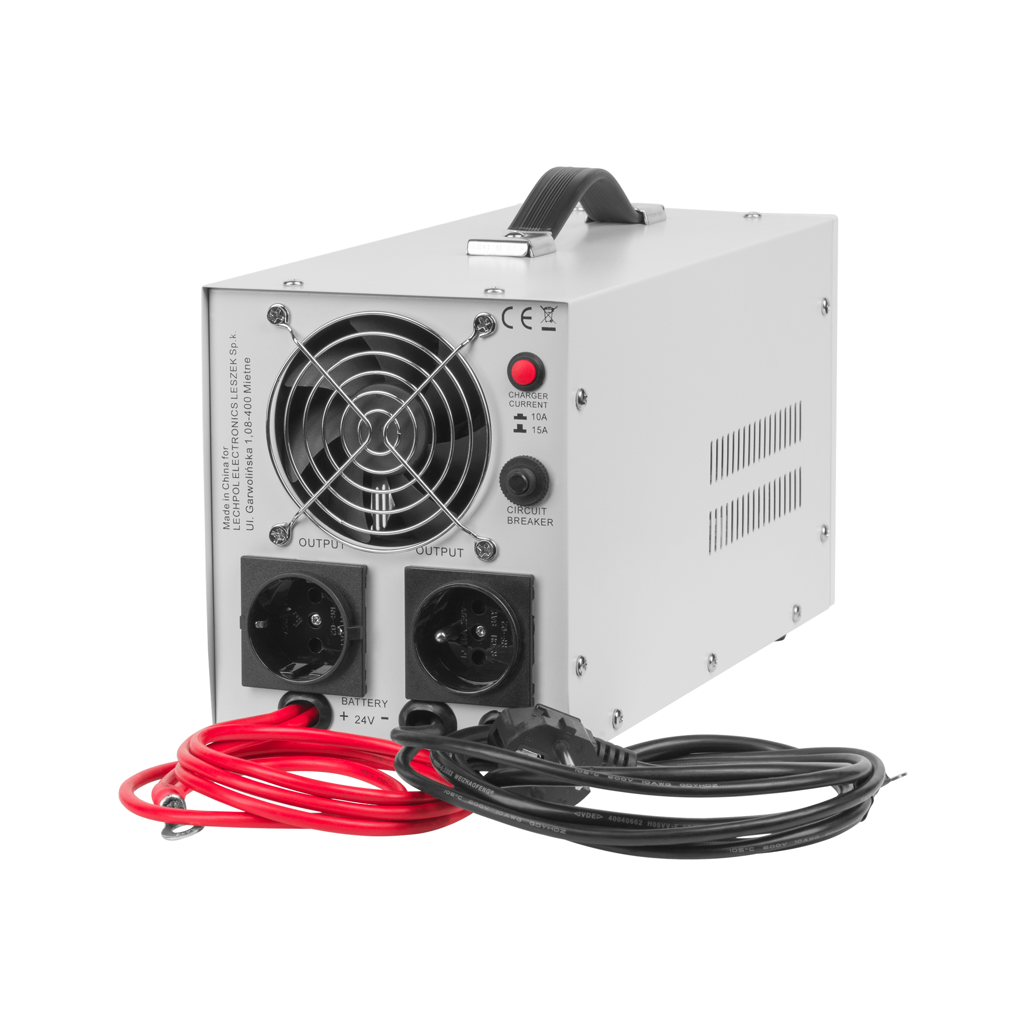 - • Prąd ładowania akumulatora: 10 A, 15 A