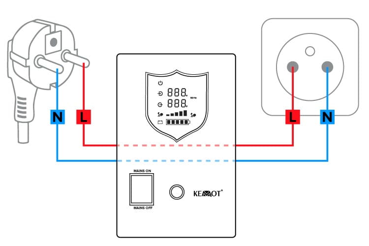 Zasilacz awaryjny KEMOT współpracuje z urządzeniami, które wyposażone są w detekcję fazy, jak np. niektóre modele pieców gazowych. Faza w naszym urządzeniu jest w stałym miejscu, bez względu na to, czy jest ono zasilane z gniazda sieciowego czy akumulatora.