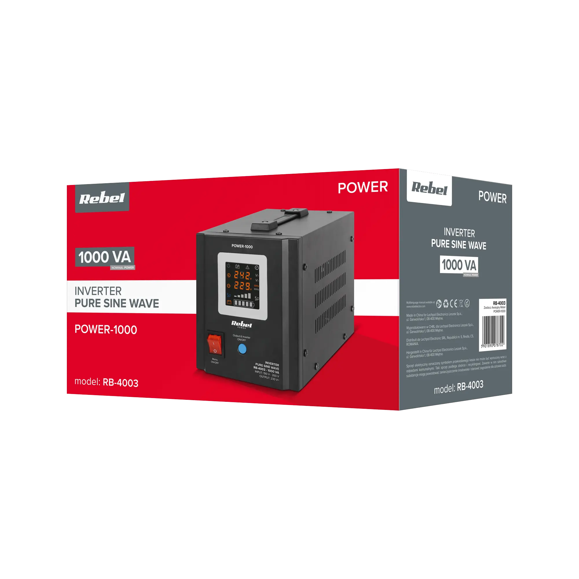 ZASILACZ AWARYJNY REBEL POWER-1000 PRZETWORNICA 12V 230V 1000VA/700W