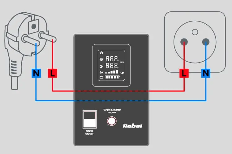 Zasilacz awaryjny Rebel współpracuje z urządzeniami, które wyposażone są w detekcję fazy, jak np. niektóre modele pieców gazowych. Faza w naszym urządzeniu jest w stałym miejscu, bez względu na to, czy jest ono zasilane z gniazda sieciowego czy akumulatora.