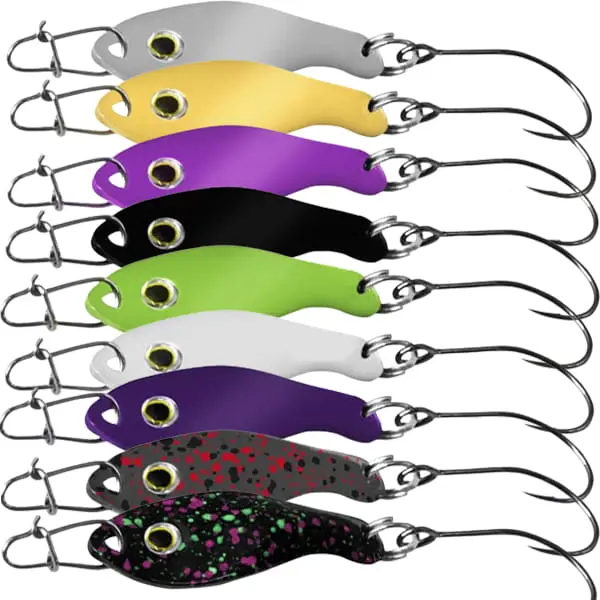 ZESTAW BŁYSTEK WAHADŁÓWKI NA PSTRĄGI OKONIE DELPHIN RYBO 0,5G 2,5CM - 9SZT
