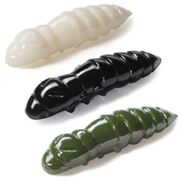 Pupa wykonana jest w trzech rozmiarach 0,9” 1,2” i 1,5” i bardzo szerokiej bazie 24 kolorów co pomoże nam w idealnym dopasowaniu „robala’ pod przebiegłe pstrągi.