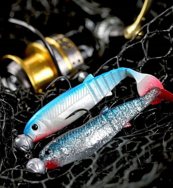 Cechą charakterystyczną tych imitacji jest "rozwarty" pyszczek, który ma za zadanie zassać główkę jigową i poprawić jej mocowanie.