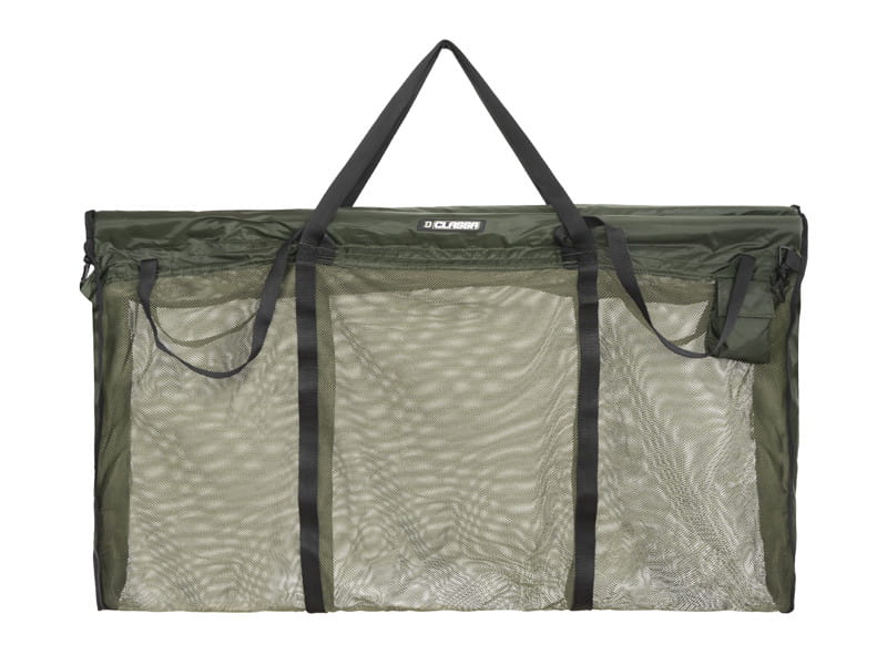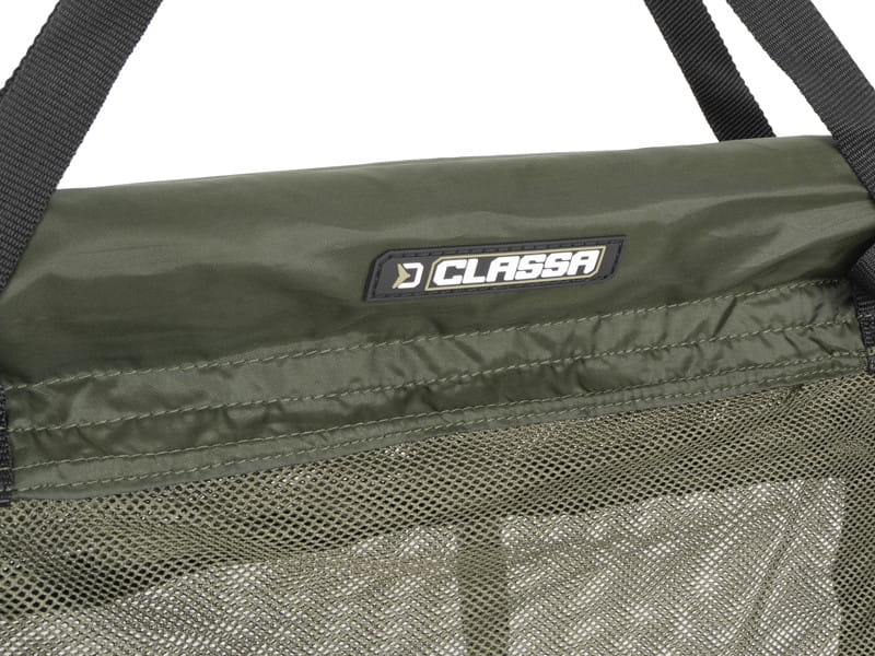 Siatka jest wzmocniona dwoma czarnymi paskami tekstylnymi, które przechodzą w centralny uchwyt. Dzięki długim uchwytom torbę można łatwo zawiesić na wadze. Torba posiada również tekstylne uchwyty po obu stronach ułatwiające podnoszenie i przenoszenie. Solidny zamek błyskawiczny znajduje się po obu stronach i na górze, umożliwiając całkowite rozpięcie CWS w celu wygodniejszego przenoszenia ryb.