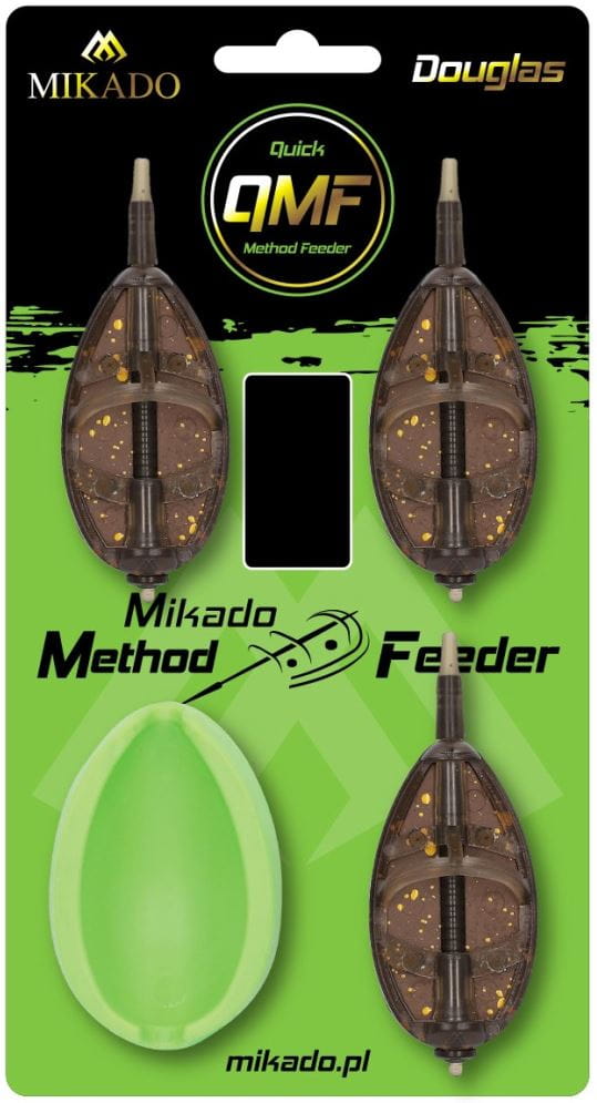 Ewolucja świetnych koszyków Method Feeder Douglas. Q.M.F. to system pozwalający w szybki i łatwy sposób wymienić podajnik bez konieczności rozbrajania całego zestawu. Wystarczy zdjąć gumową tulejkę, zsunąć koszyk z trzpienia i zamienić go innym modelem.