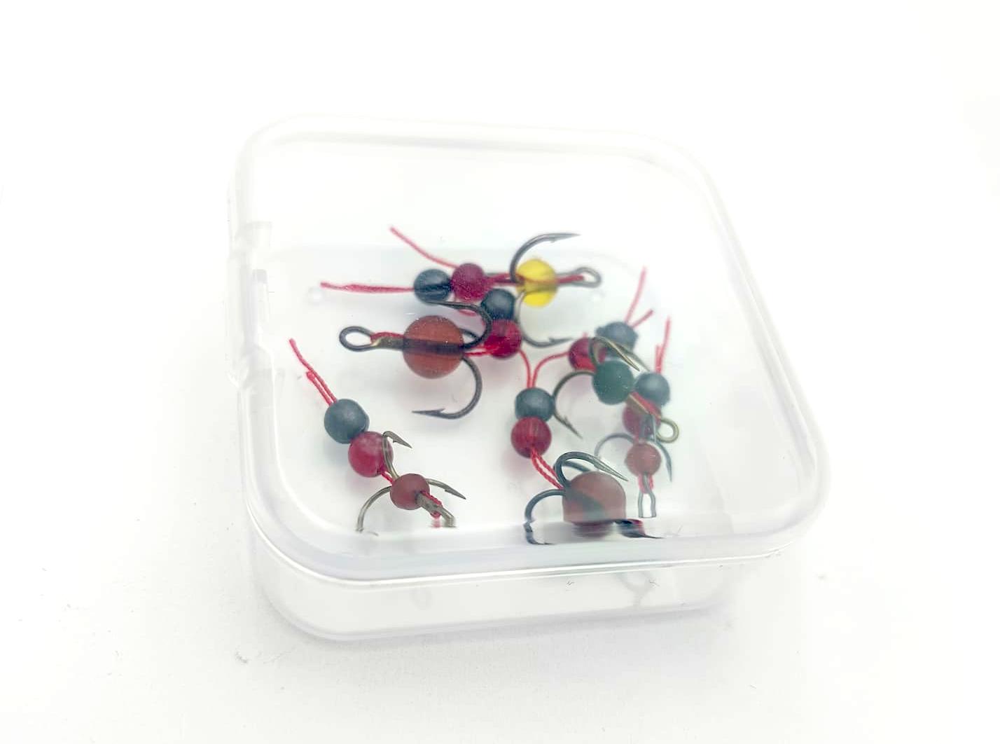 ZESTAW - KOTWICZKI PODLODOWE Z DOCIĄŻENIEM I KORALIKIEM 6X ROZ 10-14 / 0,7-1G