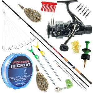 Zestaw Method Feeder, który zawiera wszystkie niezbędne elementy do efektywnego łowienia ryb metodą feederową: