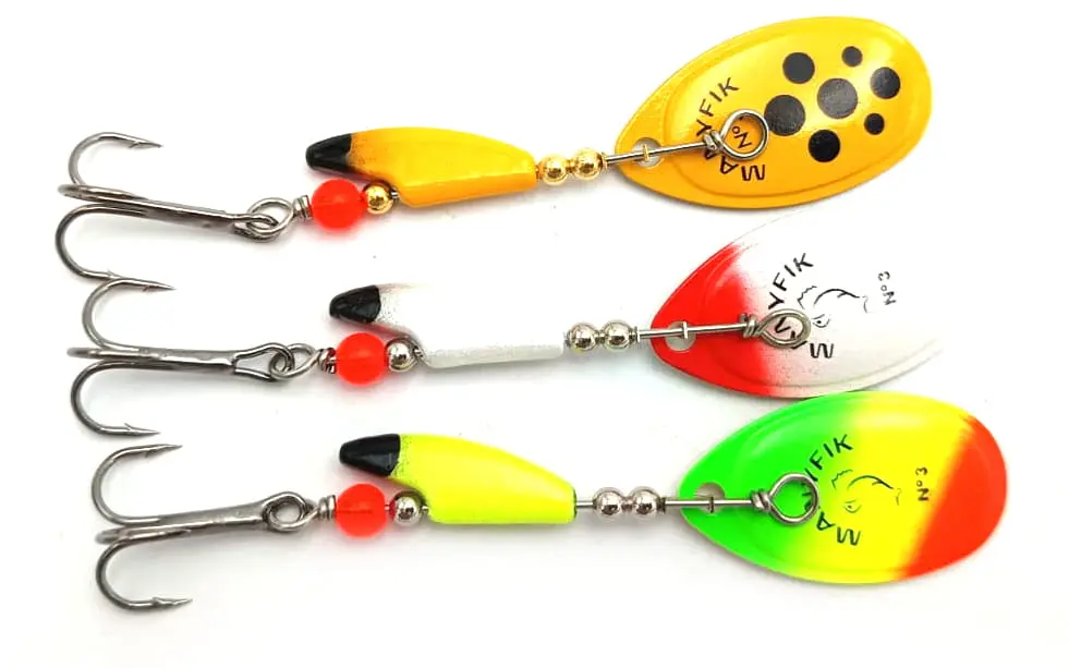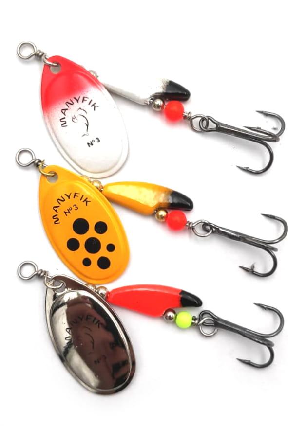 ZESTAW OBROTÓWEK MANYFIK BŁYSTKI MOBBY F # 3 3SZT PRZYNĘTY SPINNINGOWE MIX
