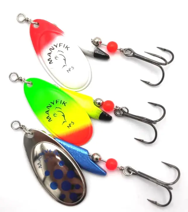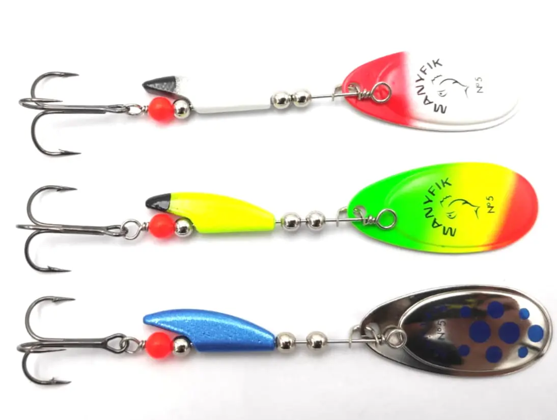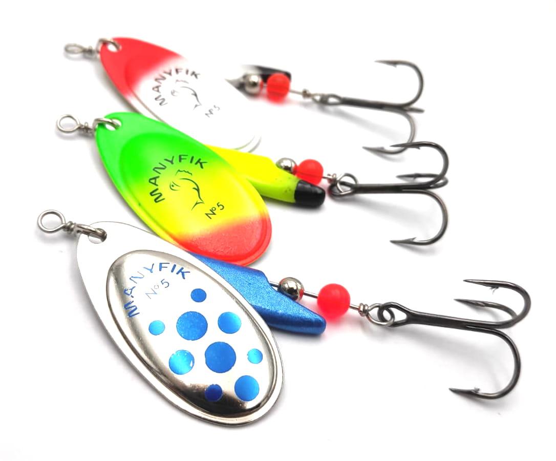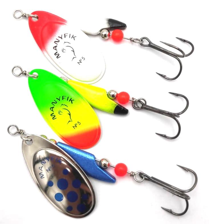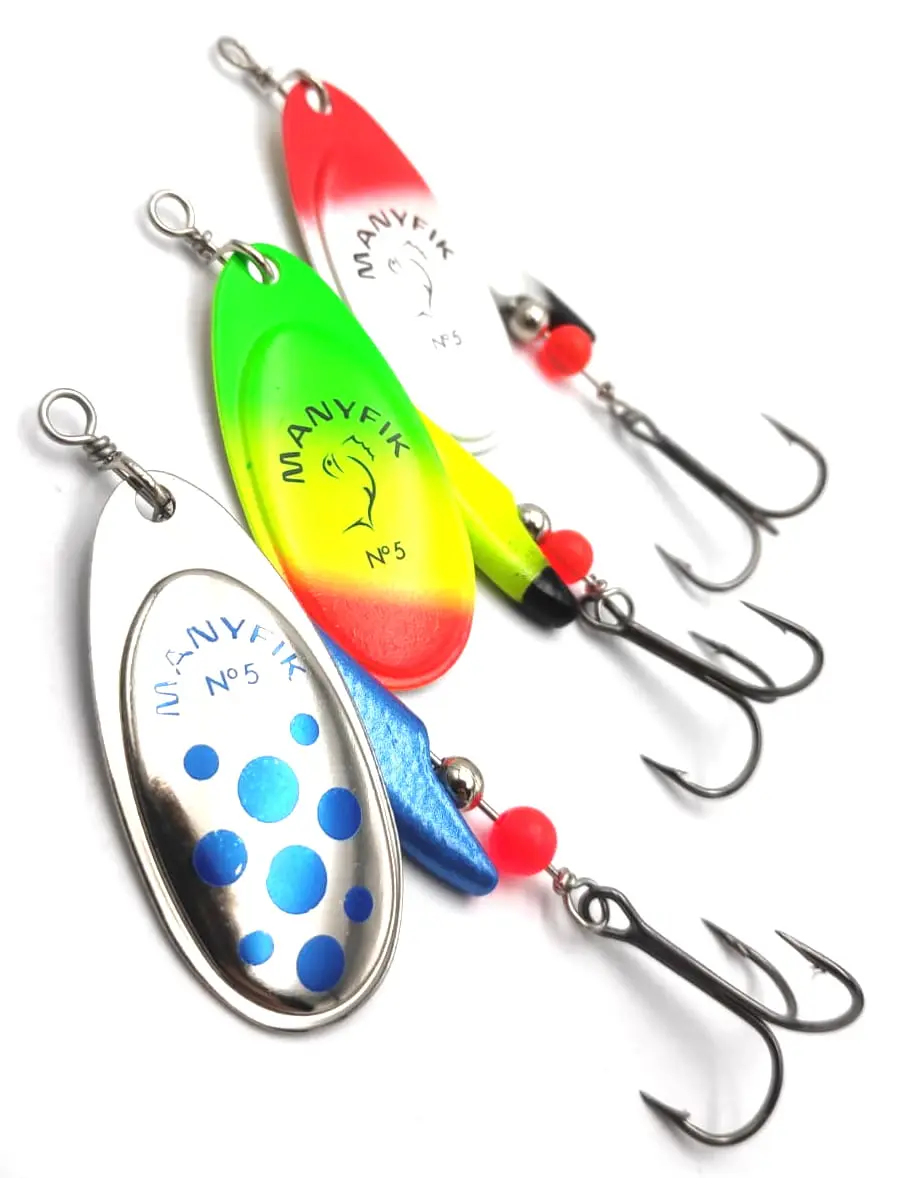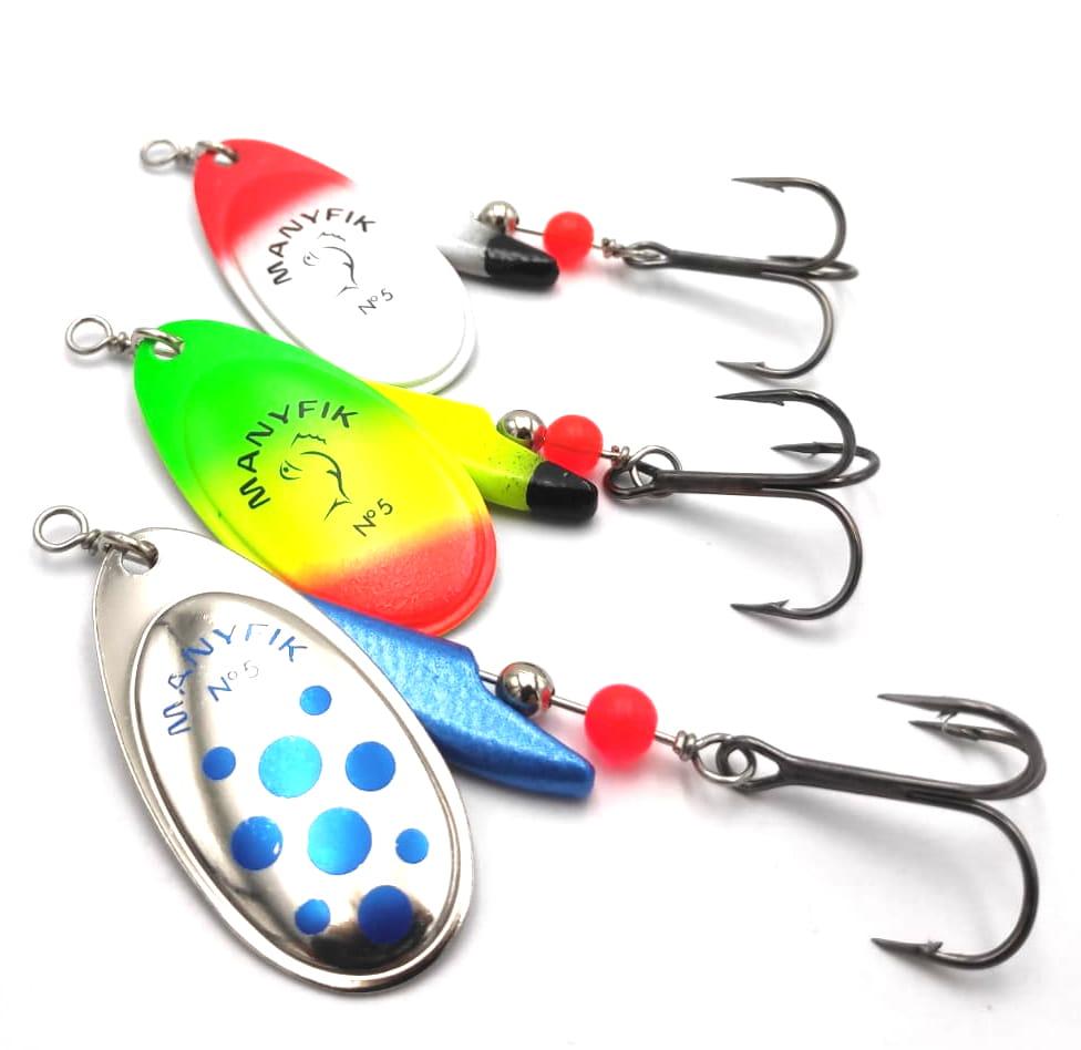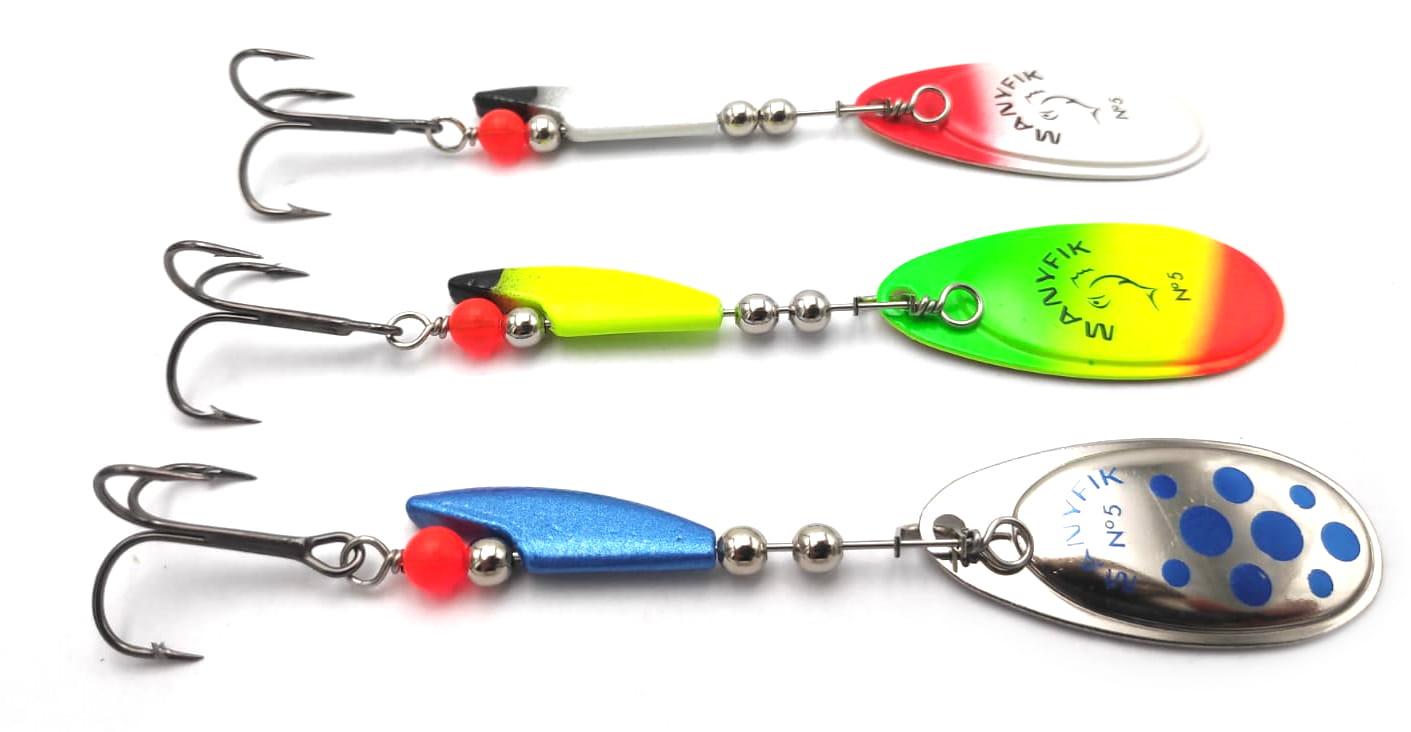 ZESTAW OBROTÓWEK MANYFIK BŁYSTKI MOBBY F # 5 3SZT PRZYNĘTY SPINNINGOWE MIX