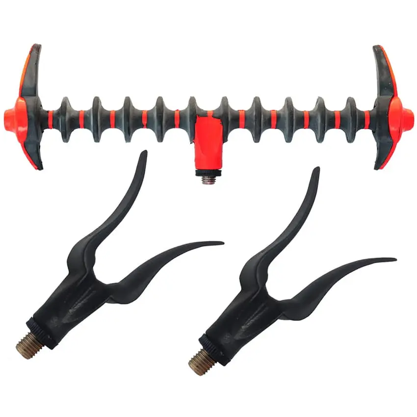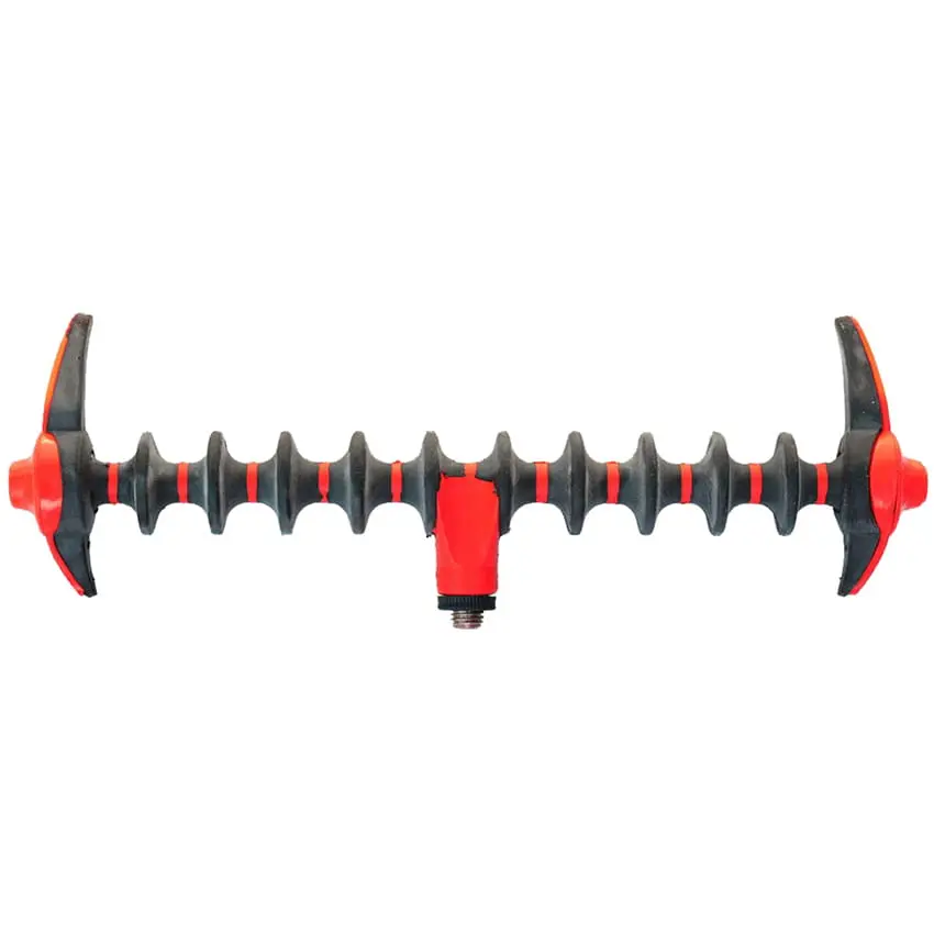 Ramionka podpórki możemy ustawiać w 13 pozycjach. Gwint zamontowany w podpórce jest kompatybilny ze wszystkimi fajkami, ramionami i sztycami wędkarskimi.