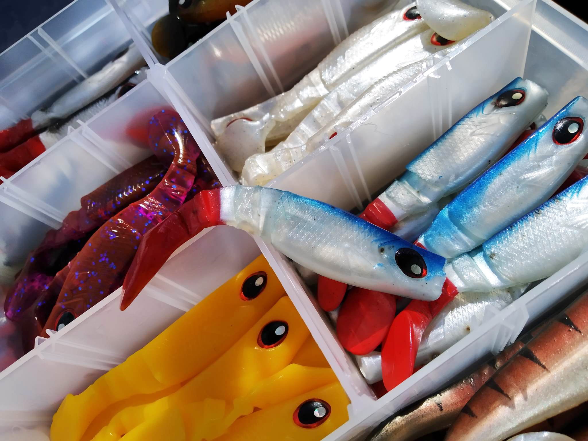 Skrzynka jest praktyczna i poręczna, zorganizowana w sposób umożliwiający łatwe przechowywanie i transport przynęt. Każdy kolor jest starannie umieszczony w oddzielnej przegródce, aby zapobiec wymieszaniu się i uszkodzeniu podczas przechowywania. Skrzynka ma również wygodne zapięcie, które zapobiega przypadkowemu otwarciu i utracie przynęt.