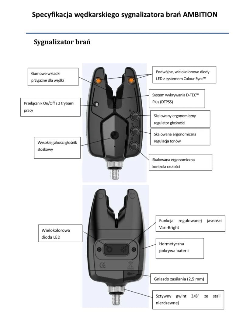 – Wskaźniki LED z funkcją sygnalizowania brania Colour Sync