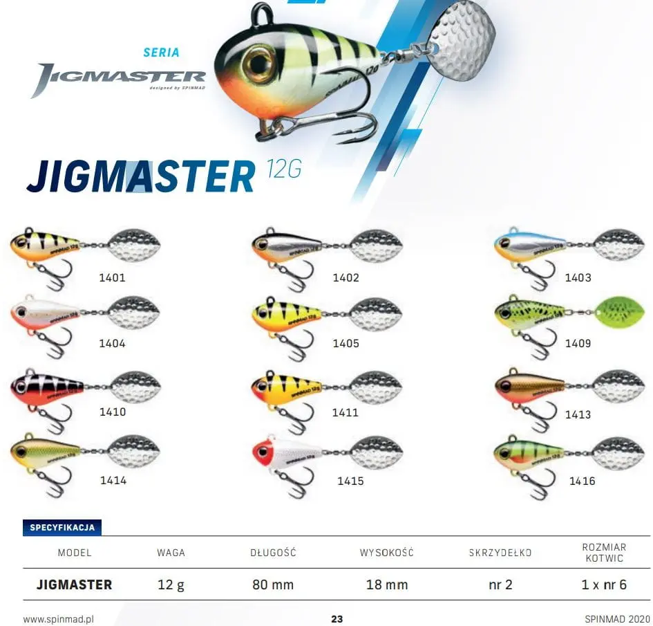 Przynęty Spinmad Jigmaster to wirujące ogonki zaprojektowane do łowienia szczupaków. Zastosowanie nowej technologii i materiałów pozwoliło na powiększenie wabików do ulubionych szczupaczych rozmiarów nie zwiększając ich wagi. Dzięki temu wabiki doskonale spisują na "szczupakowych" miejscówkach.