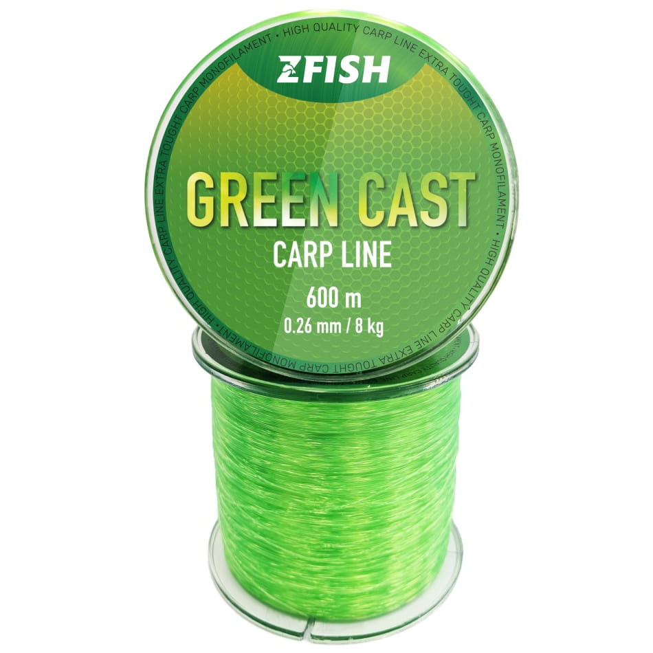 ZFISH wprowadza na rynek nową linię doskonałych żyłek karpiowych pod nazwą Green Cast . Dzięki rygorystycznej japońskiej technologii produkcji uzyskaliśmy wysoką nośność, małą średnicę i wyjątkową odporność na ścieranie. To tonąca żyłka przeznaczona do połowu dużych karpi, odpowiednia zarówno do dalekich rzutów, jak i do balansowania. Żyłka jest bardzo mocna i elastyczna, ale nie skręca się. Ma niesamowicie wysoką wytrzymałość - zarówno przy rozciąganiu, jak i przy węzłach. Green Cast jest prawie pozbawiony pamięci. Jego nowoczesna kolorystyka FLUO GREEN jest doskonale widoczna nawet przy słabym oświetleniu lub w nocy. Z pewnością docenisz to, gdy dowiesz się, gdzie aktualnie znajduje się złowiona ryba i dokąd ewentualnie zmierza, dzięki czemu będziesz mógł zareagować na czas i odpowiednio. Żyłka jest również odporna na promieniowanie UV i charakteryzuje się długą żywotnością. Końcowa obróbka żyłki zaowocowała wyjątkowo gładką powierzchnią, co przyczynia się do znacznego zmniejszenia tarcia, nie tylko podczas rzutów, ale także na różnych przeszkodach wodnych.